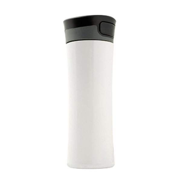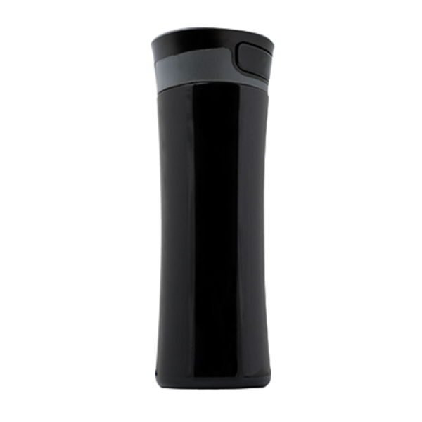 Kubek ze stali nierdzewnej o podwójnych ściankach. Przyciskowy mechanizm otwierania przykrywki pozwala na wygodne picie. Pojemność 450ml.